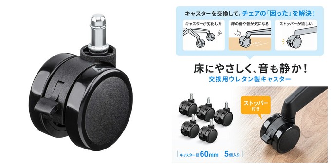 チェア一脚分のキャスターを一度に交換できる、便利な5個セット。