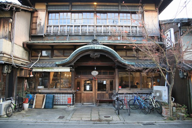 「さらさ西陣」は築80年の「銭湯旧藤の森温泉」をリノベーションした異色のカフェだ。外観は、ズバリ昔の銭湯の面影がそのまま残されている。