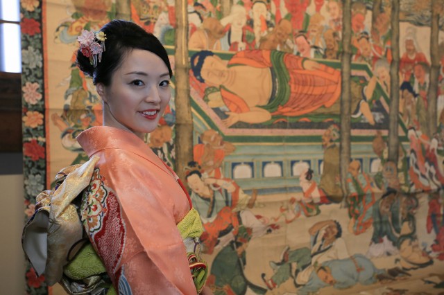 2017京都・ミスきもの 境 沙織さんと「大涅槃図」 |