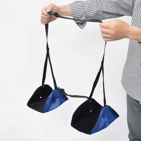 片足ずつ独立しており、付けた時の窮屈感を和らげる。足だけではなく、ふくらはぎを乗せてリラックスも可能。新幹線、飛行機で移動の際のむくみが気になる方に。エコノミー症候群対策に。旅のお供におすすめだ。
