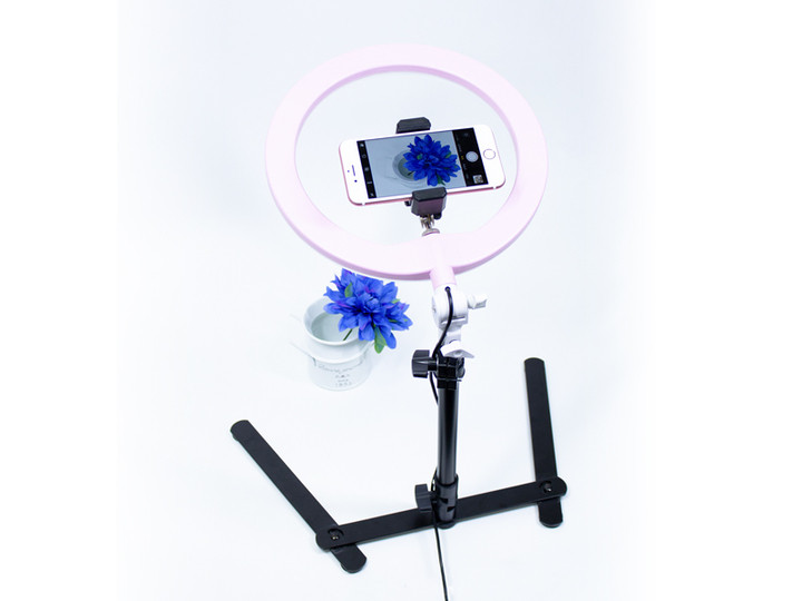 この製品はLEDリングライトの中央にスマホをマウントするため、影を気にせず光が回り込んだキレイなライティング撮影が行えるのがポイントだ。