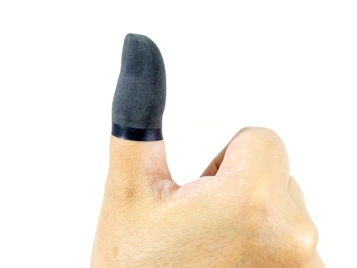ゴム製で厚みが非常に薄く、従来型の布製タイプよりも指そのままの感覚に近い状態でのプレイを行える。また布製のタイプと比較し、フリック操作の邪魔にならない程度の適度なすべり抵抗があり、特に精密な操作を要求される音ゲーなどに最適な製品だ。
