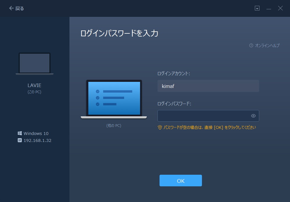 やり方は簡単で、転送元と転送先のPCでPCTransを起動しておき、同じネットワーク内にいる場合は「PCからPCへ」をクリックし、あとは自動で接続先のPCを瞬時に検索して表示してくれるので、移行先のPCを選べばよい。そのあとは、移行先のPCに設定されているパスワードを入力すれば接続完了。「このPCから他のPCへ転送する」を選べば、ドライブ内のデータをPCTransが検索して自動的に転送してくれる。新しいPCを買ったときなど、前の環境を移行するのは、手動でやるとするとかなり面倒くさい作業なのだが、PCTransを使えば数クリックで終わるので、とても簡単だ。