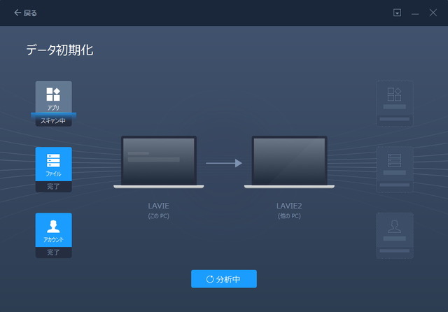 「PCからPCへ」のメニューでは、いま使っているPCのアプリや写真、音楽。ファイル、ユーザーアカウント、設定の情報をほかのPCへ簡単に移行できる。新しいPCを購入したときなどには威力を発揮する。