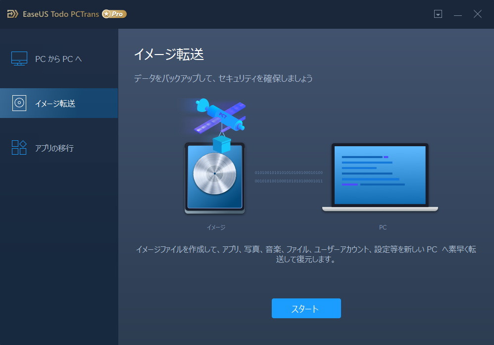 イーザスソフトウェアの「EaseUS Todo PCTrans Pro 10.5」(以下、PCTrans)は、1つのPCからもう一つのPCへ設定を転送したり、イメージファイルを作成してアプリや写真、音楽、ファイル、ユーザーアカウントを新しいPCへ転送したり、アプリを別のドライブに移行したいと思ったときに使えるアプリだ。