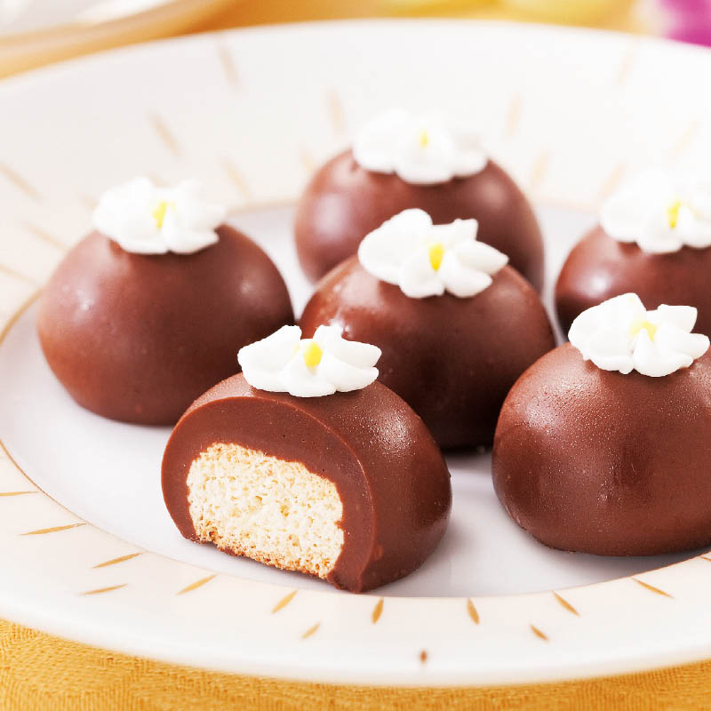 ハワイの花プルメリアのモチーフをのせた、見た目も可愛く、バター風味のクッキーとチョコレートが絶妙にマッチしたひとくちサイズのチョコクッキー。