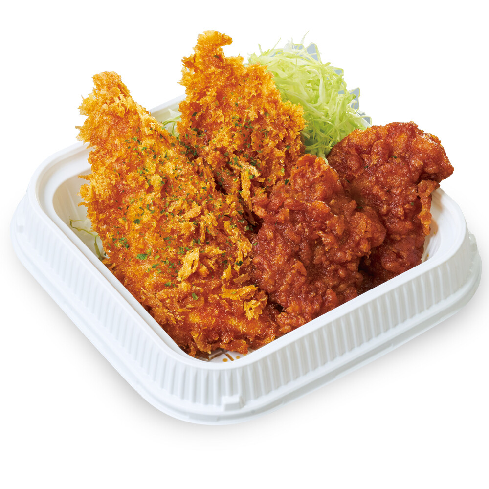 ○タレカツとから揚げの合い盛り弁当 690円(税込745円)