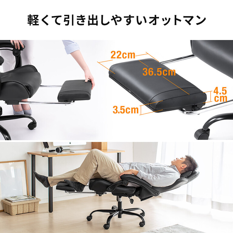 スライド式オットマンが内蔵されているので使いたいときにさっと引き出すことができる。