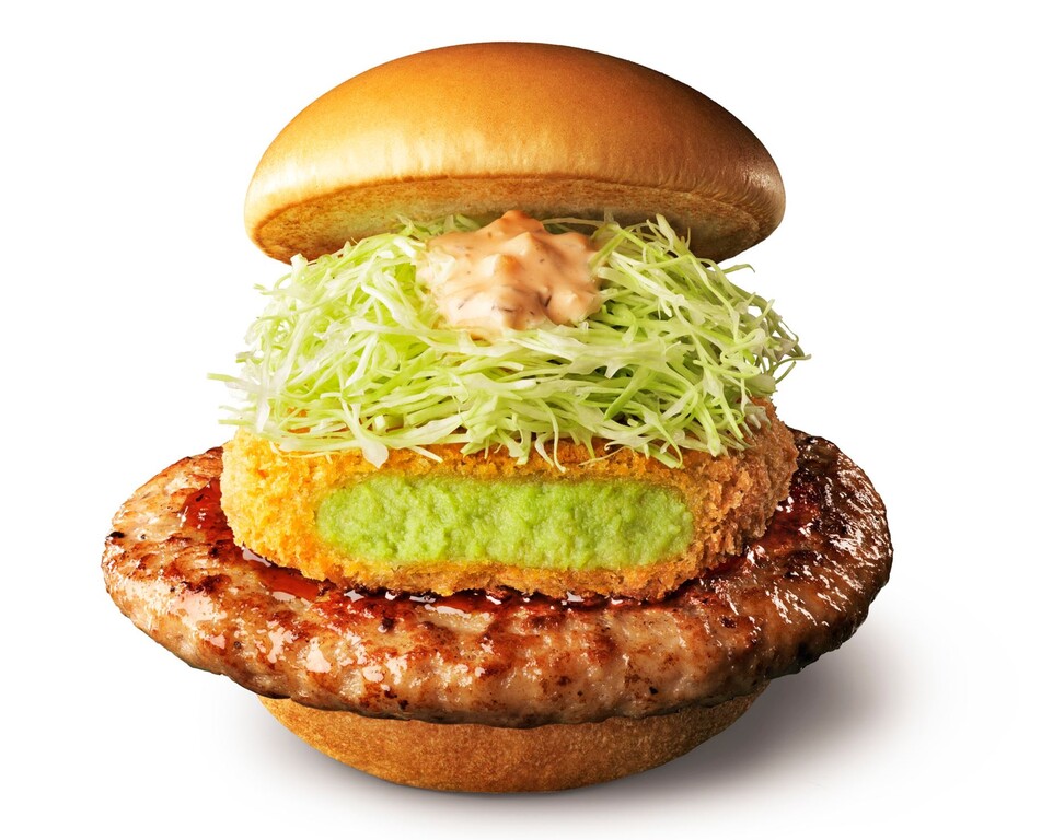 (ハンバーグを2枚にした「ダブルとびきりアボカドコロッケ」も販売する。)