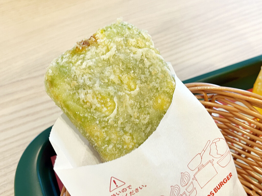「とびきりアボカドコロッケ」は、バンズから飛び出した肉に大きなインパクトがある。ガッツリとした食べ応えがあり、コロッケと肉の相性もバッチリ!アボガドも良いアクセントとなっており、十分な満足感が得られた。