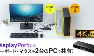 周辺機器を2台のパソコンで共有できる!4K対応DisplayPortパソコン切替器