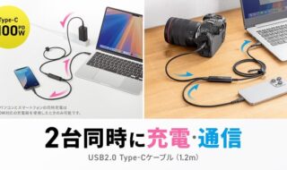 2台同時に充電・通信できるUSB2.0 Type-Cケーブル