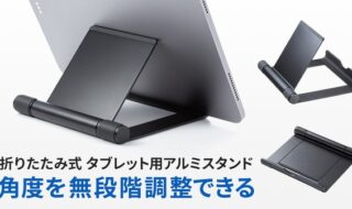 サンワサプライ株式会社は、折りたたみ可能で携帯性に優れたアルミ製のタブレット用スタンド「PDA-STN35BK」を発売した。薄型・軽量で、無段階の角度調整と上質な質感で、様々なシーンで快適なタブレット操作をサポートする。また、タブレット以外にもモバイルモニターやゲ…詳細を見る